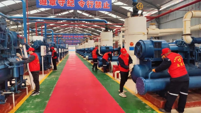 陶忽图、门克庆项目部党员、青年志愿者对车间机组进行包机擦洗、保养工作。青年职工分工明确,有人打水、有人清洁机组、有人对机组进行保养加油,经过1天的努力奋战,对车间3台机组进行擦拭、保养,使机组焕然一新。(文影/李昊章)