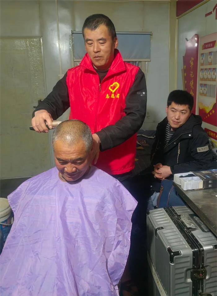 华北、华东市政项目部组织青年志愿者开展“扮靓环境 美化家园”“情暖一线 服务职工”志愿服务活动。上班前志愿者来到职工生活区,对生活区内卫生进行彻底打扫,到门岗帮助职工收取快递,班中为冻结施工人员送去热茶水。组织党员、团员青年到仓库周边道路义务清扫,清理周边垃圾,为老师傅提供上门理发服务,志愿者一边为他们精心设计修剪发型,一边与他们亲切地聊起家常。老师傅看着自己剪过的头发,竖起大拇指,连声道谢,夸赞志愿者的手艺好、品德高。(杨晓雨、耿譞)